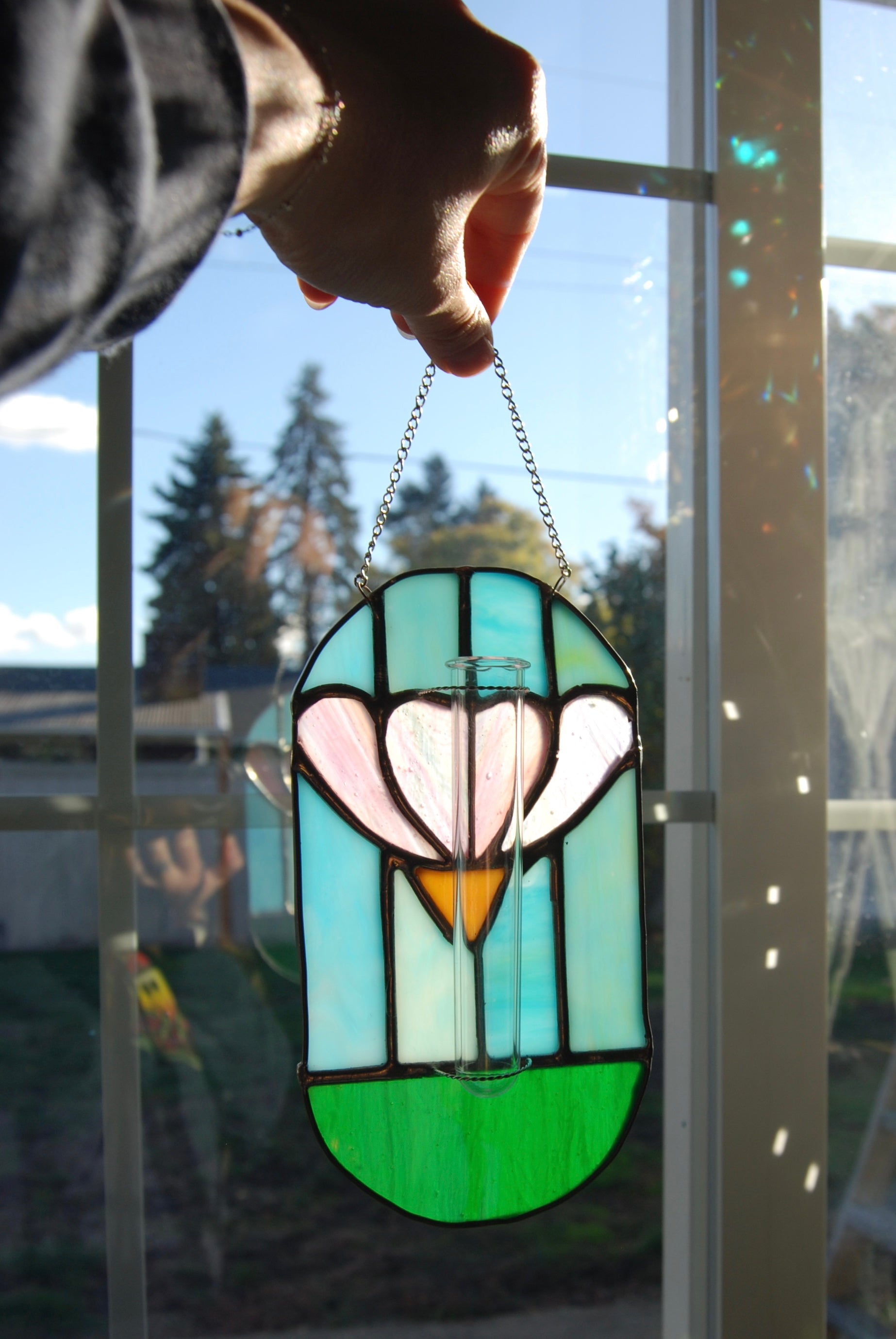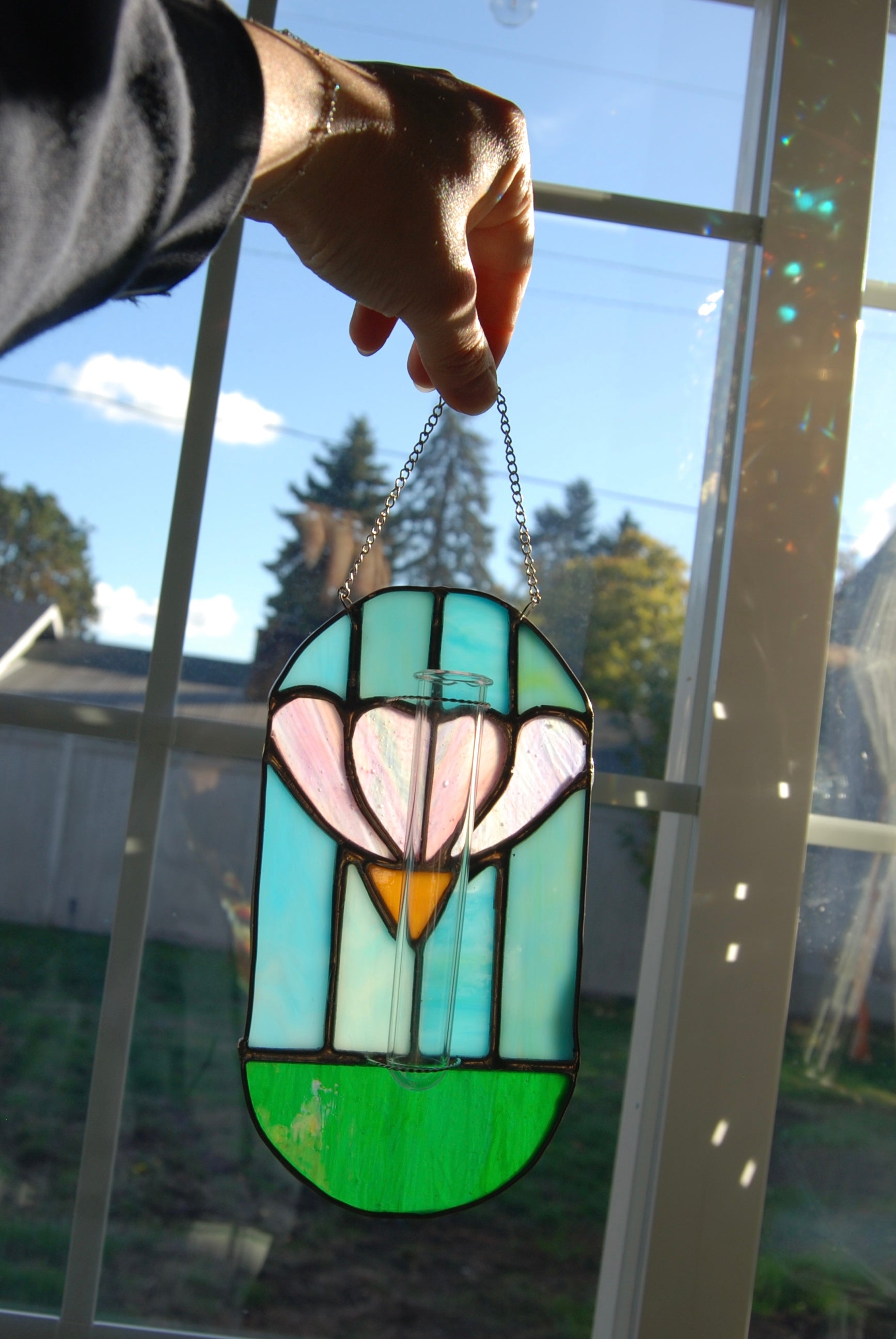Over time, the solder lines may darken or develop a soft, aged patina — this is a natural oxidation process and part of the charm of stained glass!